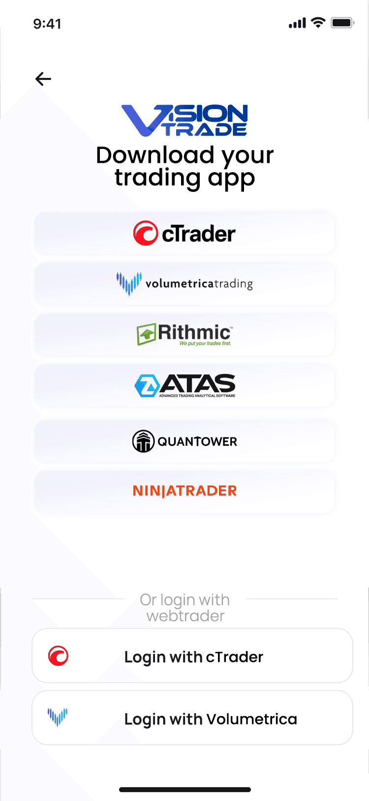 VisionTrade funciona con distintos proveedores de plataforma. Descarga e instala la que más se adecue a tu estilo y necesidades.