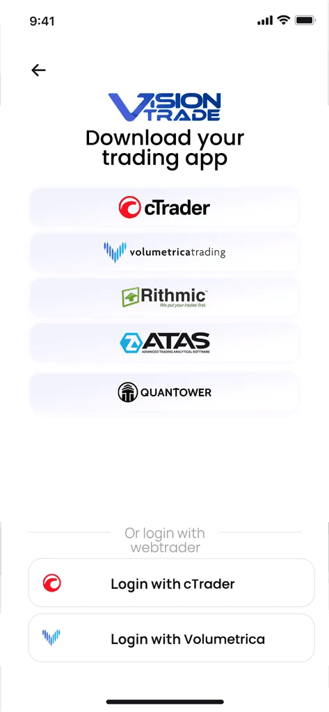 VisionTrade funciona con distintos proveedores de plataforma. Descarga e instala la que más se adecue a tu estilo y necesidades.